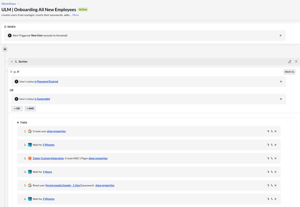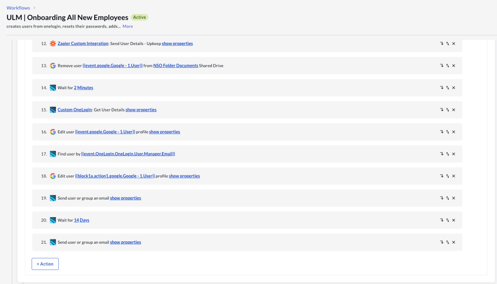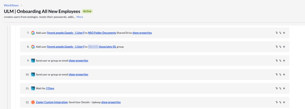 This end-to-end onboarding automation eliminated the need for manual provisioning steps by IT, saving up to 1.5 hours per new hire. It also ensured timely and consistent communication with new employees, improved accuracy in downstream systems (like Gmail, Upkeep and OneLogin), and accelerated the employee’s ability to contribute from day one.