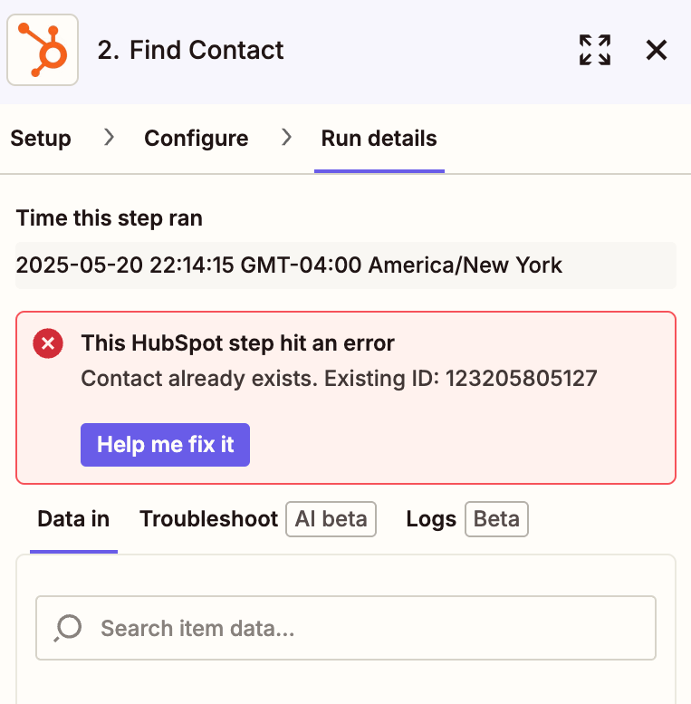 With these changes, the Zap now performs as expected—automatically and accurately associating Deals with the appropriate Contacts in HubSpot. By simplifying the search logic and properly mapping the Record IDs, we’ve eliminated the error and improved the reliability of this workflow.