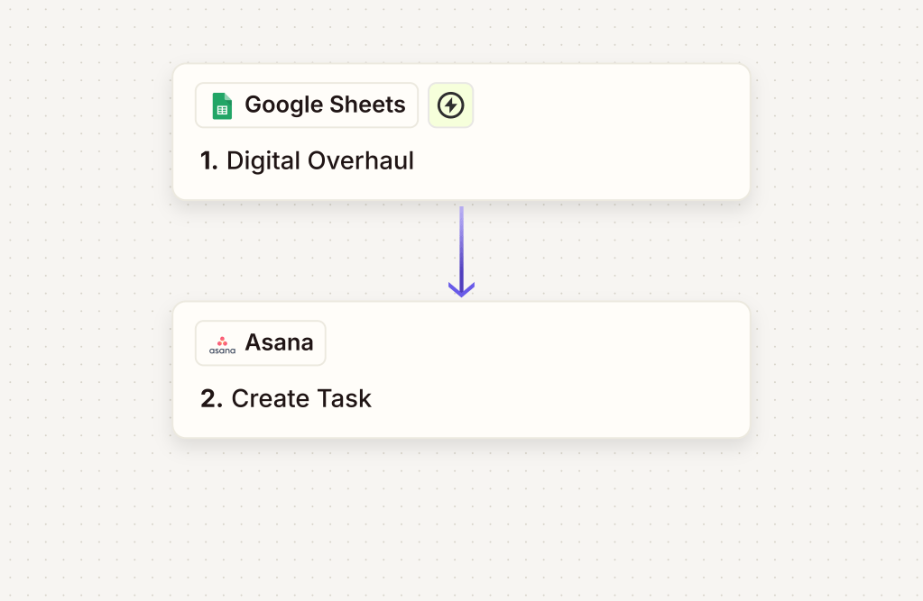Managing multiple intake forms can become chaotic fast — especially when each one feeds into a separate Google Sheet. That’s why we helped our client streamline their process using Zapier: now every time someone submits a form, their data is sent directly to Asana as a “New Lead” task.