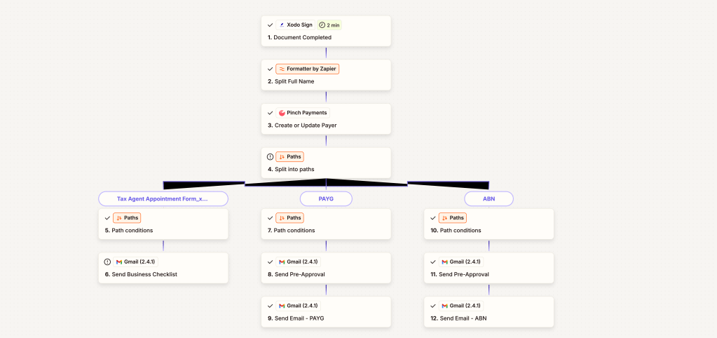 Based on client type (Tax Agent, PAYG, or ABN), routes to the correct email sequence. - Gmail Integration: