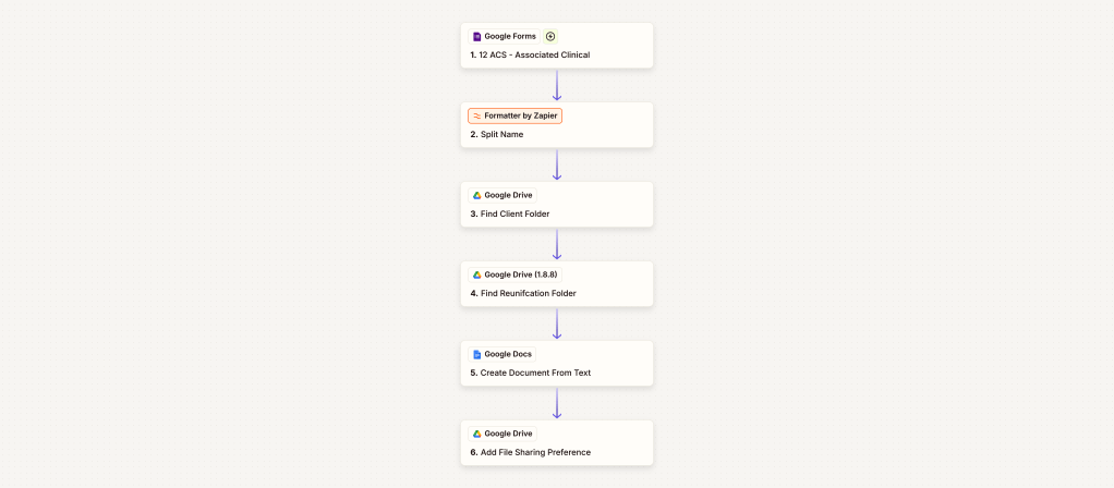 This project supported a therapist managing high-conflict custody and reunification cases. The goal was to automate the processing of a specialized form: 12 Associated Clinical Signs (ACS) of Psychological Abuse—a detailed clinical intake used to assess psychological manipulation in co-parenting dynamics.